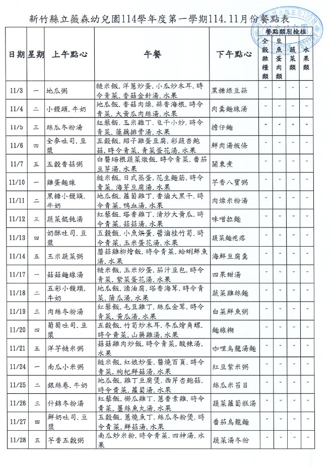 114年11月份餐點表